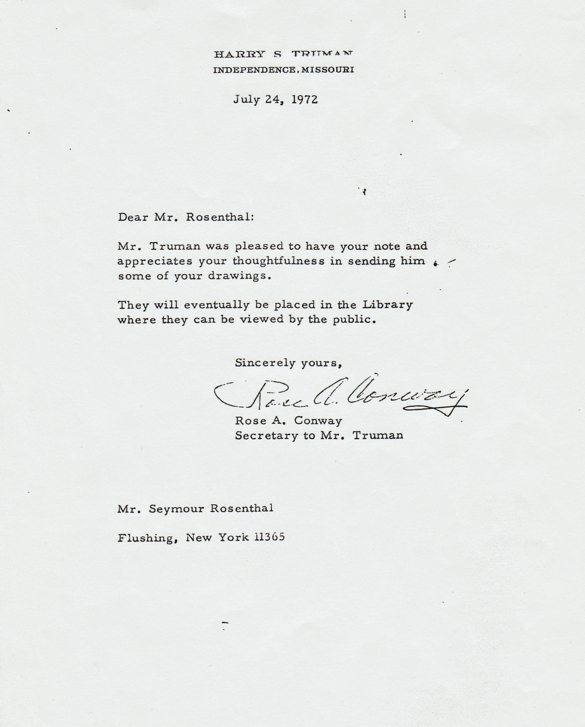 Letter from Rose A. Conway,secretary to past President Harry S Truman. Harry S Truman Library , Independence Missouri July 24 , 1972
