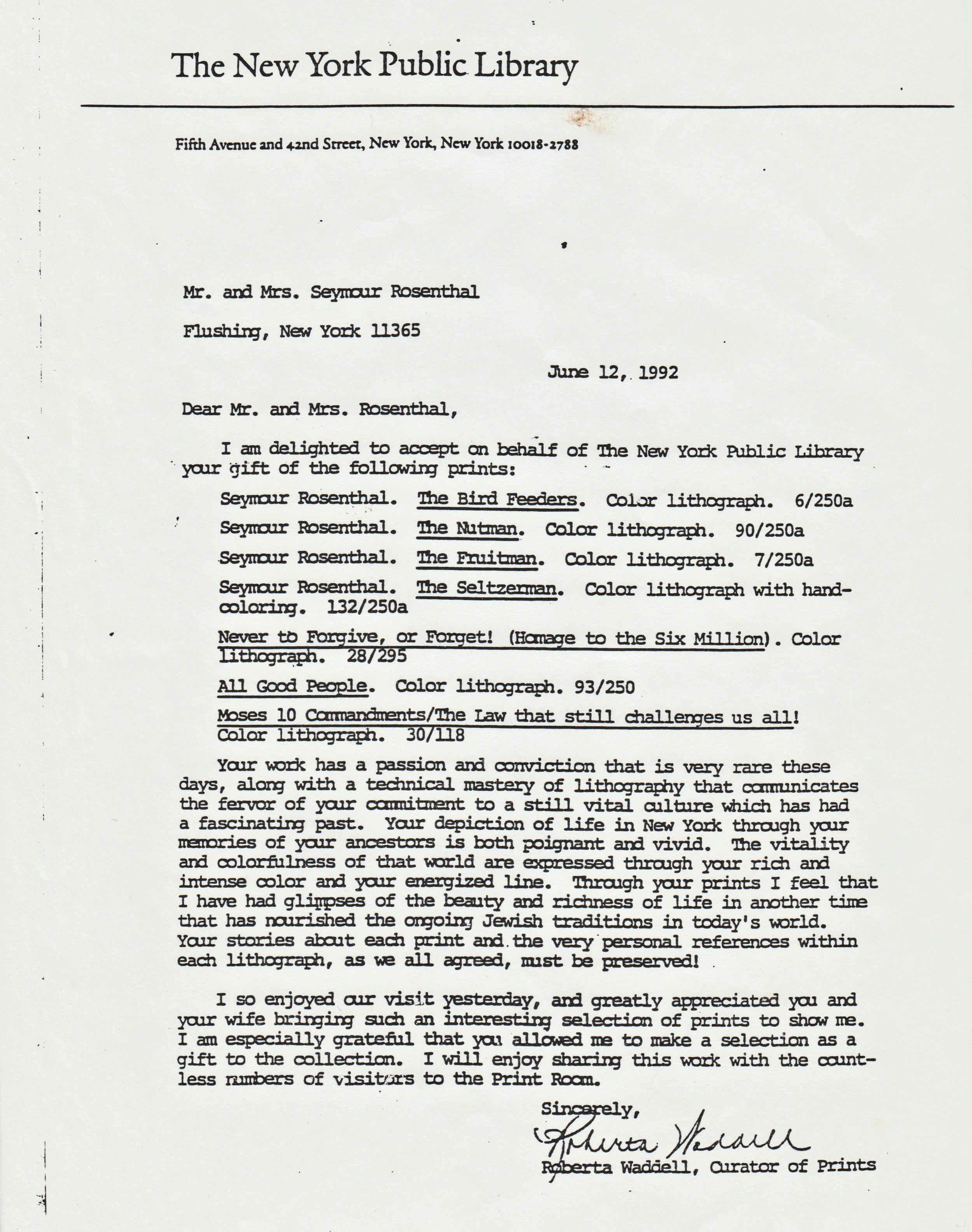 Letter from NY Public Library curator Roberta Waddell June 12 , 1992